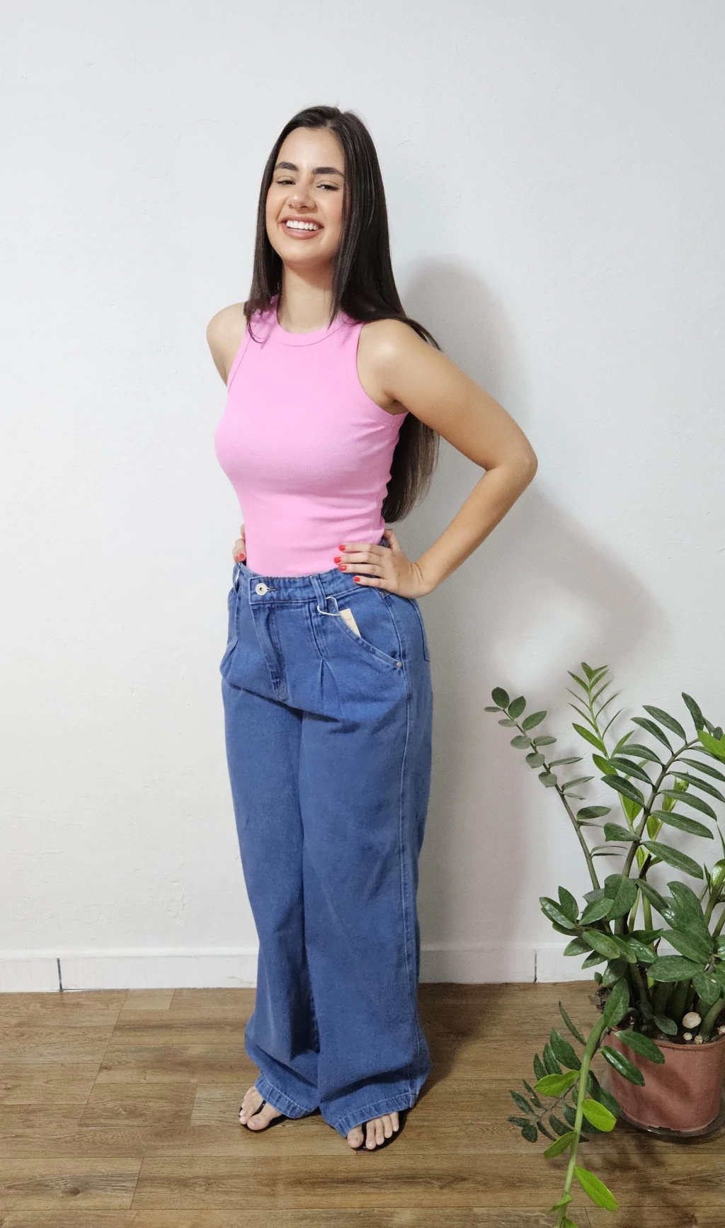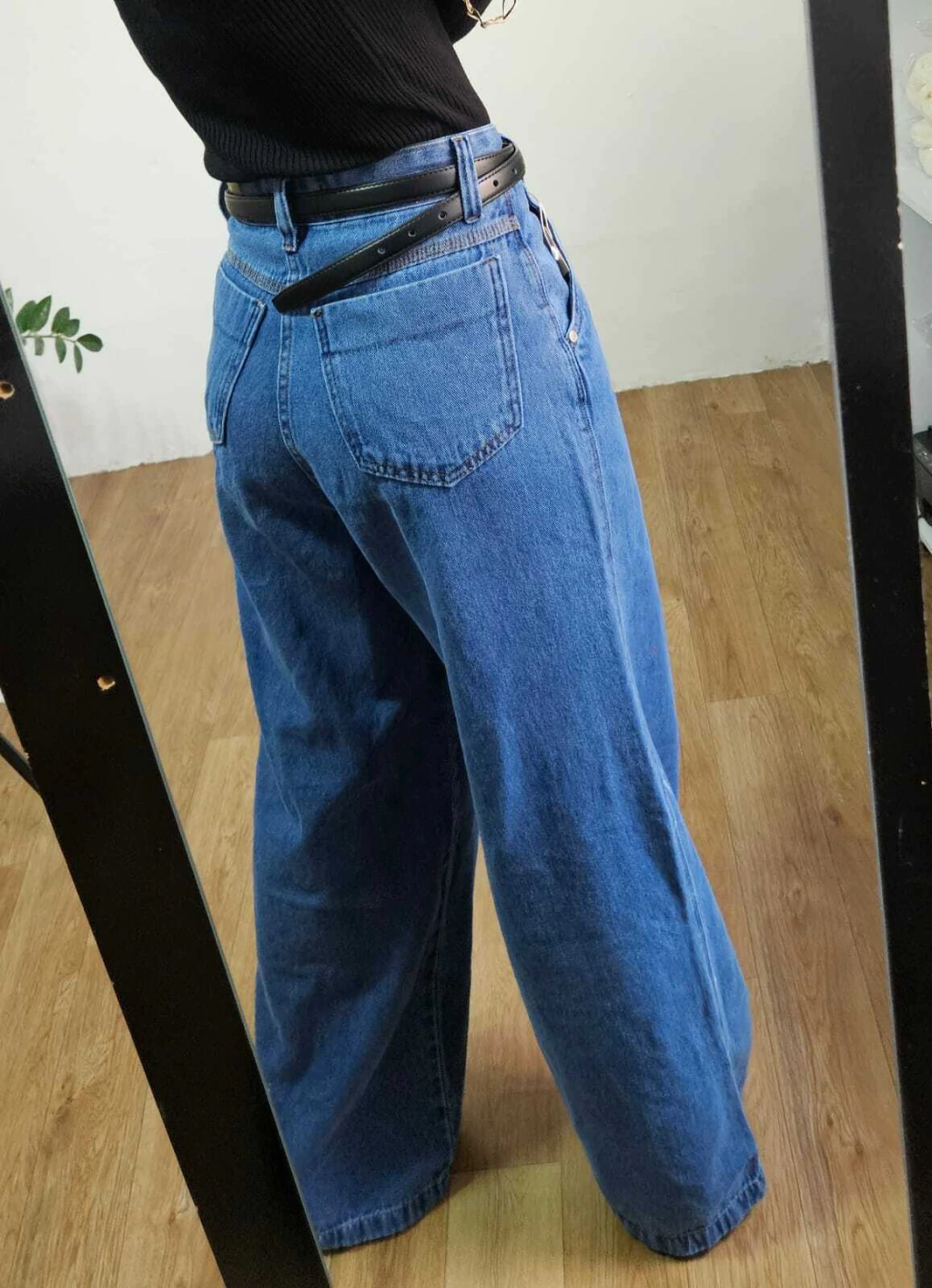 A calça jeans wide leg é a peça-chave para compor looks modernos e versáteis. Confeccionada em denim de alta qualidade, possui lavagem média atemporal, cós alto que valoriza a silhueta e caimento estruturado que une conforto e estilo. Ideal para o dia a dia ou para produções mais elegantes, combina facilmente com camisas, t-shirts ou tricôs, permitindo inúmeras composições.