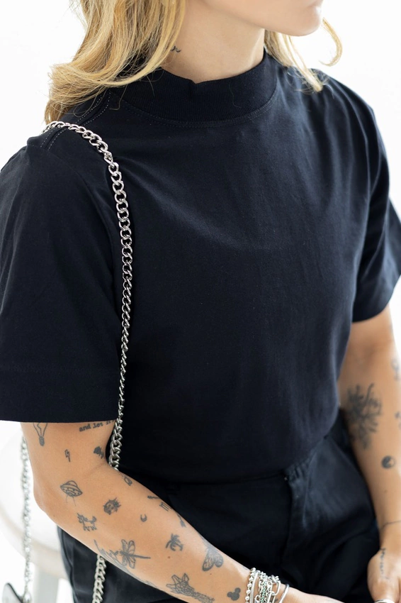 Tshirt com modelagem tradicional de camiseta gola''O'' com ribana e costura ombro a ombro.