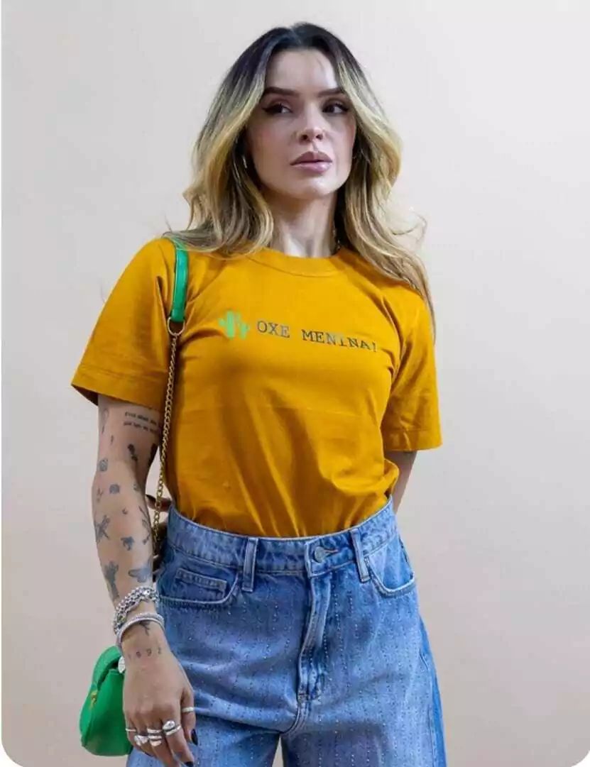 Tshirt com modelagem tradicional de camiseta gola''O'' com gola em ribana canelada e costura ombro a ombro.
