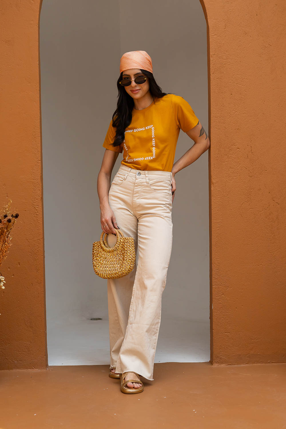 Tshirt com modelagem tradicional de camiseta gola''o'' com gola em ribana canelada e costura ombro a ombro.