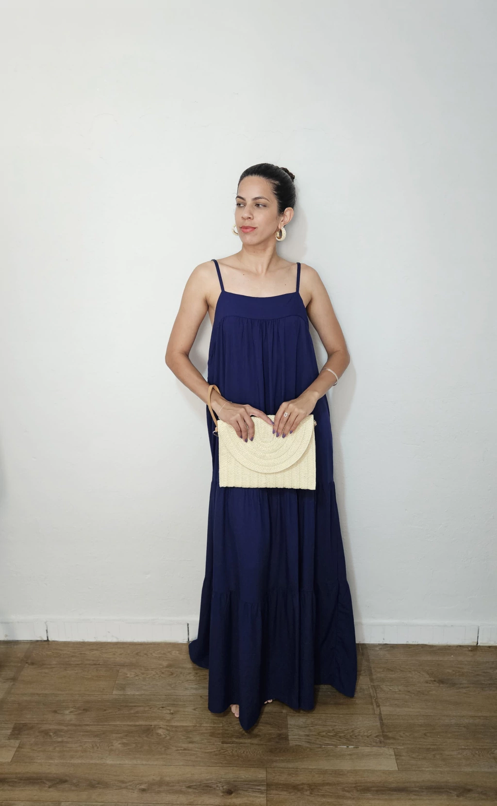 As alcinhas finas e o recorte em camadas criam um visual delicado e moderno, perfeito para quem busca praticidade sem abrir mão do estilo. Combine com sandálias, rasteiras ou acessórios de palha para um look effortless chic.