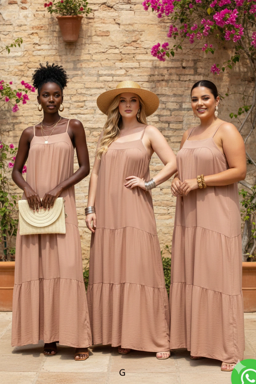 O vestido maxi laís é a tradução do conforto com elegância natural. Com modelagem ampla e leve, ele oferece movimento e fluidez em cada passo. O tecido fresco e o caimento impecável fazem dessa peça a escolha ideal para dias ensolarados, passeios ou momentos de descontração com charme.